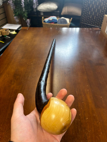Blackthorn wood has to be seasoned for 2/3 years before it can be hand carved into a walking cane.