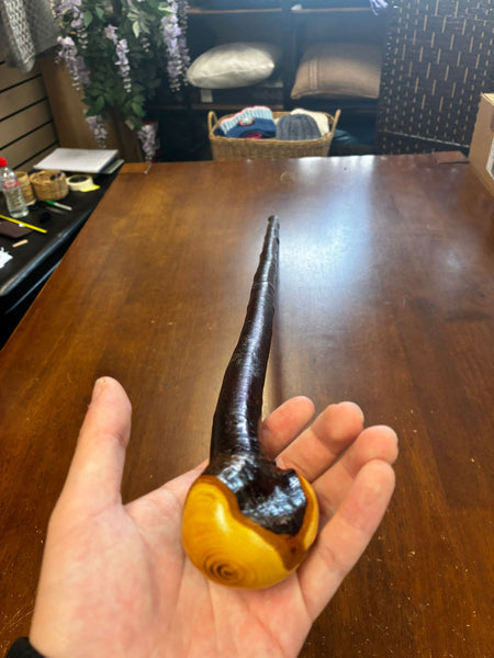 Blackthorn wood has to be seasoned for 2/3 years before it can be hand carved into a walking cane.