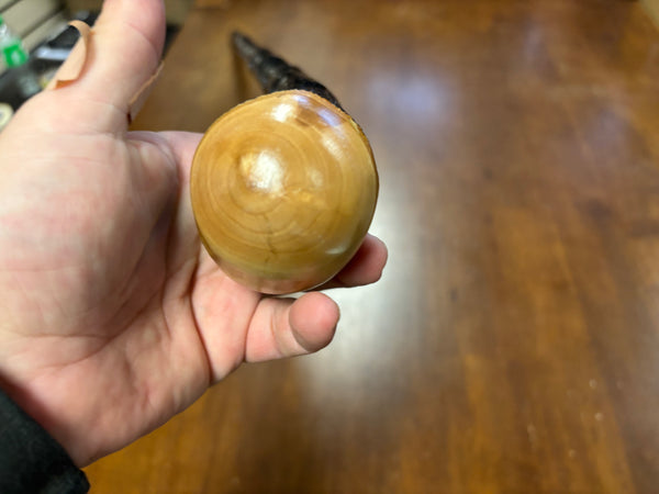 Blackthorn wood has to be seasoned for 2/3 years before it can be hand carved into a walking cane.