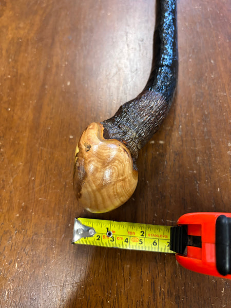 Blackthorn wood has to be seasoned for 2/3 years before it can be hand carved into a walking cane.