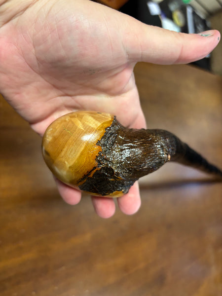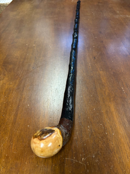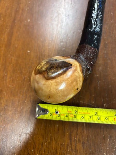 Blackthorn wood has to be seasoned for 2/3 years before it can be hand carved into a walking cane.