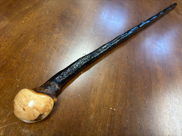 Blackthorn wood has to be seasoned for 2/3 years before it can be hand carved into a walking cane.
