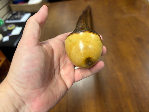 Blackthorn wood has to be seasoned for 2/3 years before it can be hand carved into a walking cane.