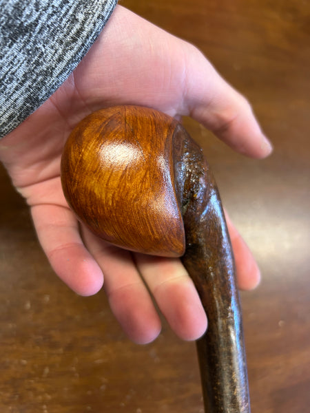 This is a one piece stick meaning unlike other stick makers who attach a handle we just use one piece of wood so the handle is naturally occurring in nature ensuring a one of a kind unique rustic walking stick.