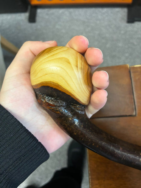 Blackthorn wood has to be seasoned for 2/3 years before it can be hand carved into a walking cane.
