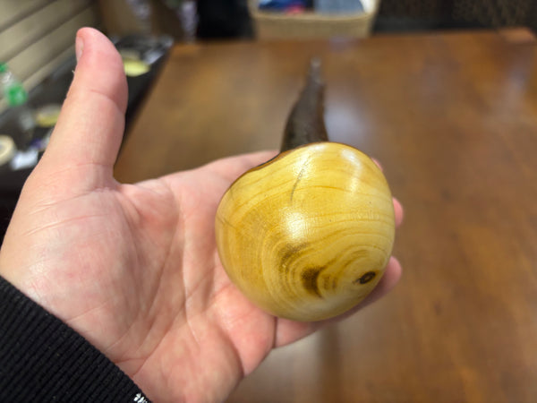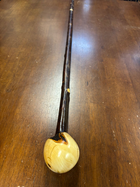 Blackthorn wood has to be seasoned for 2/3 years before it can be hand carved into a walking cane.