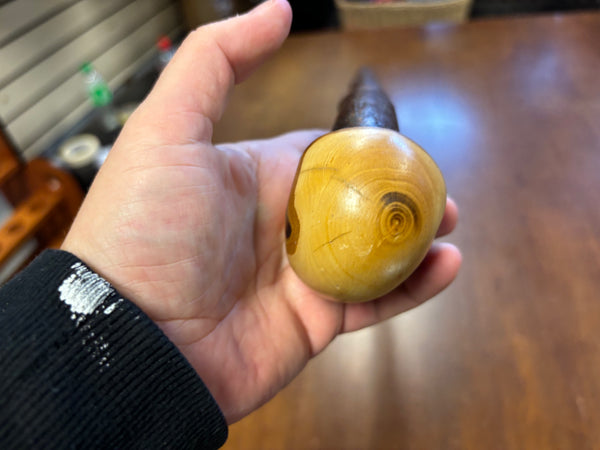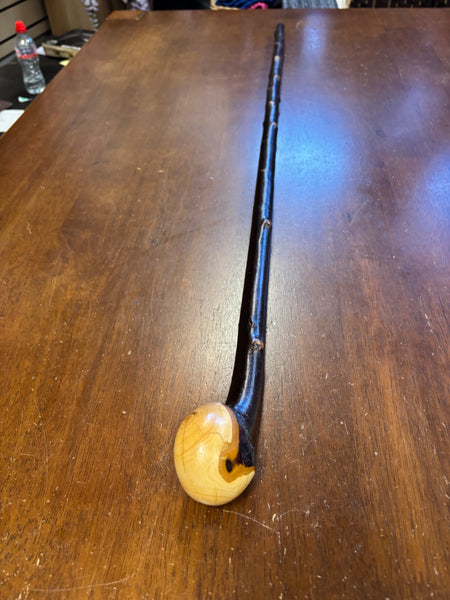 Blackthorn wood has to be seasoned for 2/3 years before it can be hand carved into a walking cane.
