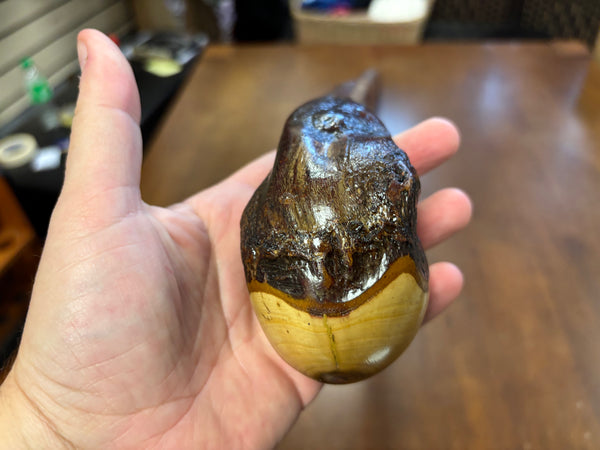 This is a one piece stick meaning unlike other stick makers who attach a handle we just use one piece of wood so the handle is naturally occurring in nature ensuring a one of a kind unique rustic walking stick.