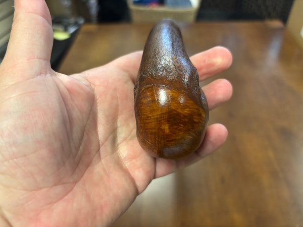 Blackthorn wood has to be seasoned for 2/3 years before it can be hand carved into a walking cane.