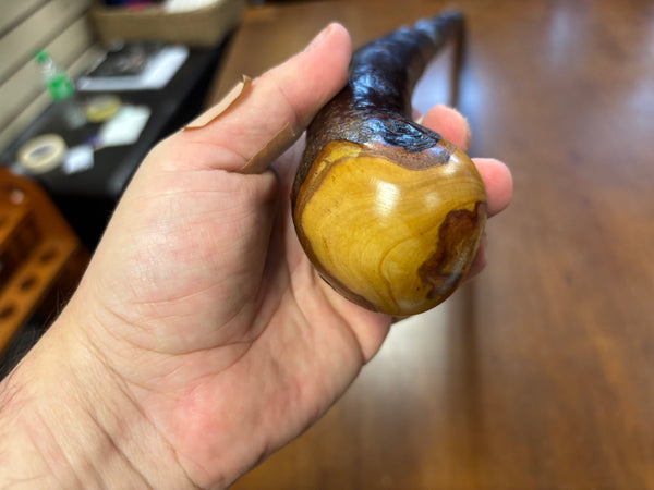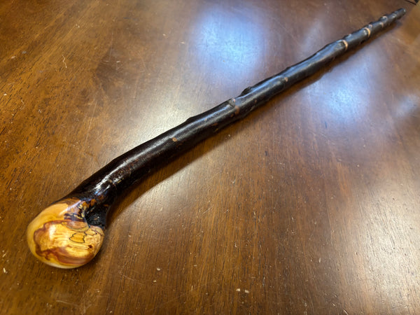 Blackthorn wood has to be seasoned for 2/3 years before it can be hand carved into a walking cane.