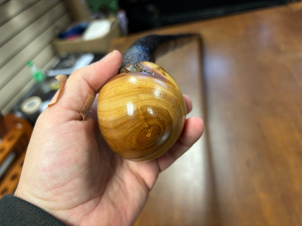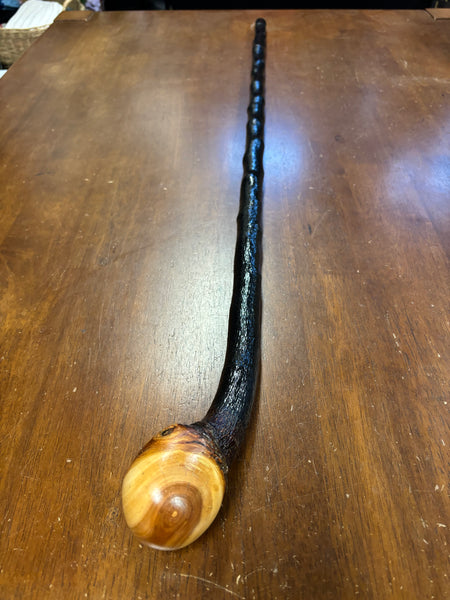 Blackthorn wood has to be seasoned for 2/3 years before it can be hand carved into a walking cane.