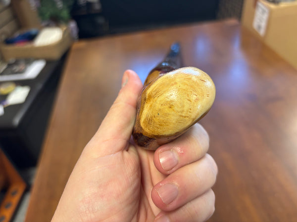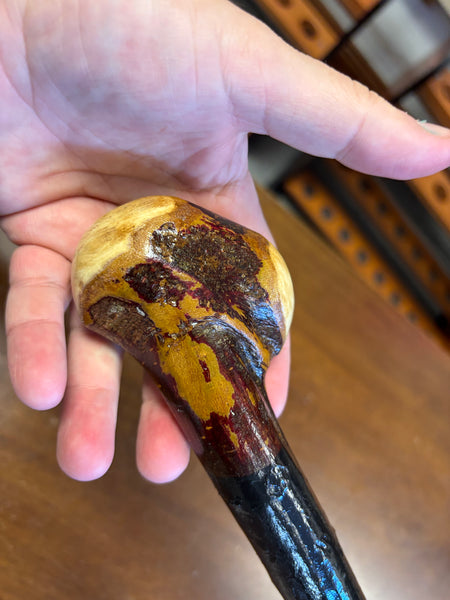 Blackthorn wood has to be seasoned for 2/3 years before it can be hand carved into a walking cane.