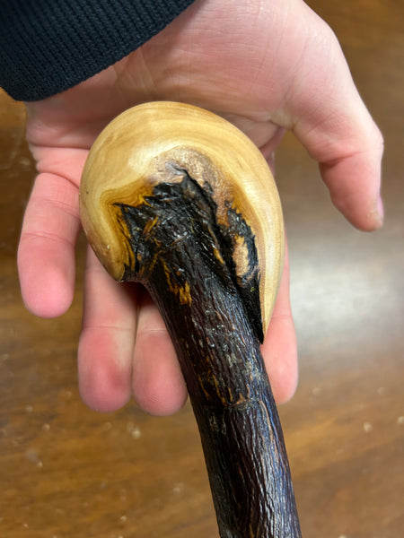 This is a one piece stick meaning unlike other stick makers who attach a handle we just use one piece of wood so the handle is naturally occurring in nature ensuring a one of a kind unique rustic walking stick.