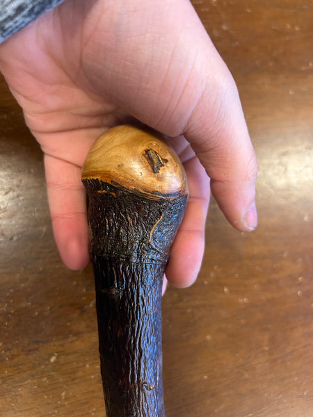Blackthorn wood has to be seasoned for 2/3 years before it can be hand carved into a walking cane.