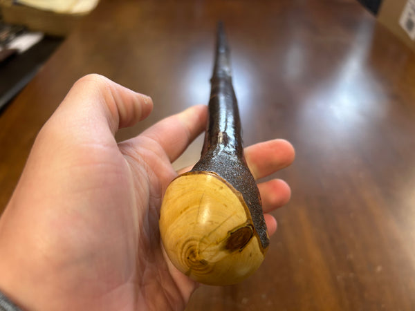 Blackthorn wood has to be seasoned for 2/3 years before it can be hand carved into a walking cane.