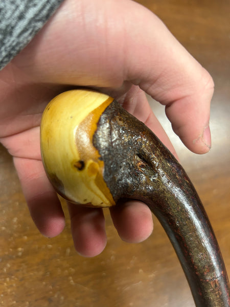 This is a one piece stick meaning unlike other stick makers who attach a handle we just use one piece of wood so the handle is naturally occurring in nature ensuring a one of a kind unique rustic walking stick.