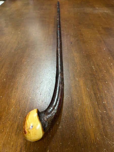 Blackthorn wood has to be seasoned for 2/3 years before it can be hand carved into a walking cane.
