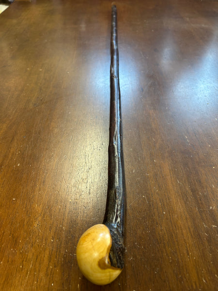 Blackthorn wood has to be seasoned for 2/3 years before it can be hand carved into a walking cane.