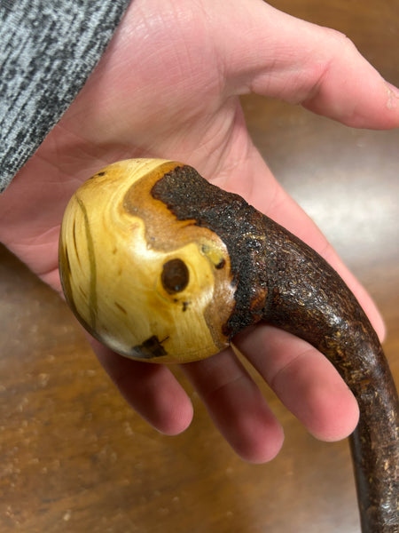 This is a one piece stick meaning unlike other stick makers who attach a handle we just use one piece of wood so the handle is naturally occurring in nature ensuring a one of a kind unique rustic walking stick.