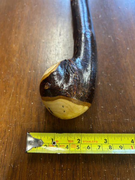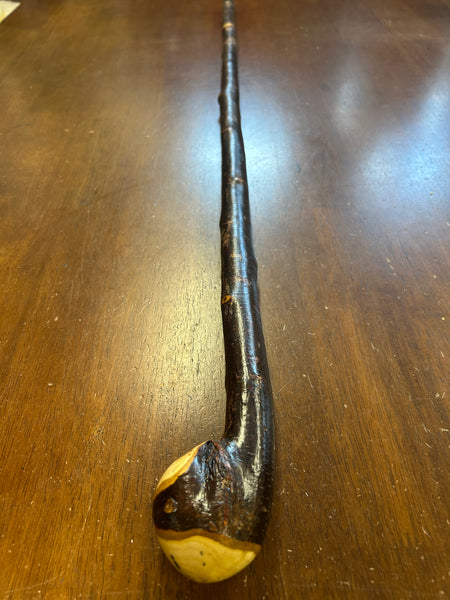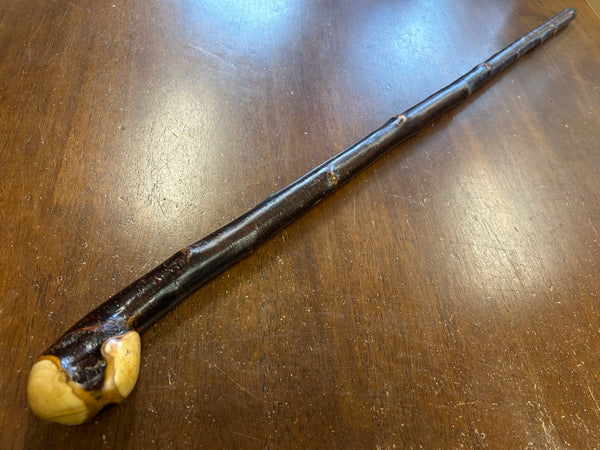 Blackthorn wood has to be seasoned for 2/3 years before it can be hand carved into a walking cane.