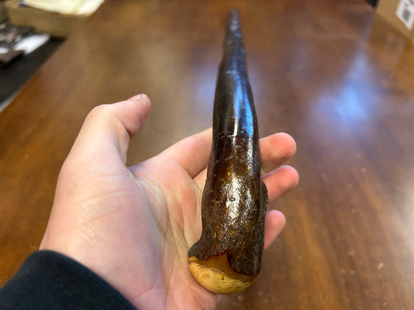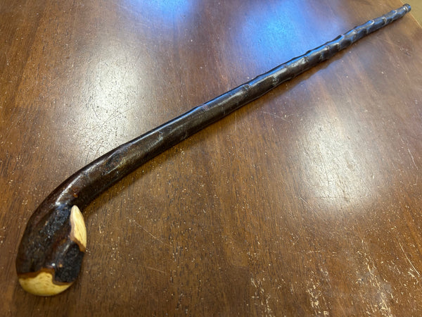 Blackthorn wood has to be seasoned for 2/3 years before it can be hand carved into a walking cane.
