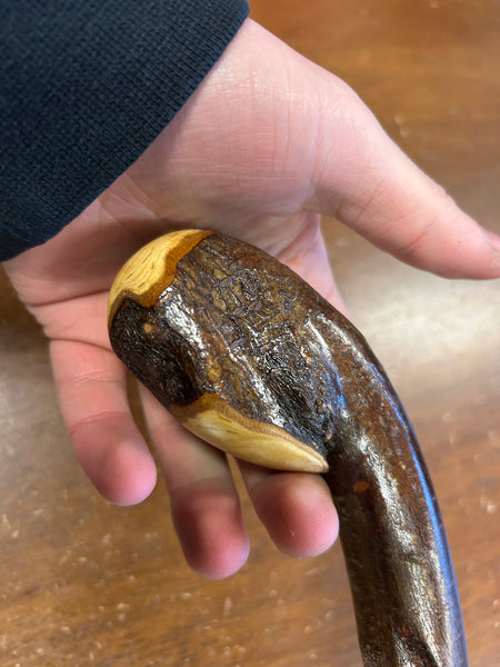 This is a one piece stick meaning unlike other stick makers who attach a handle we just use one piece of wood so the handle is naturally occurring in nature ensuring a one of a kind unique rustic walking stick.