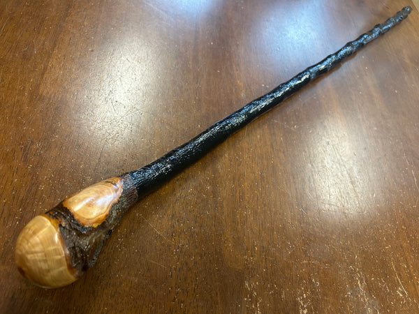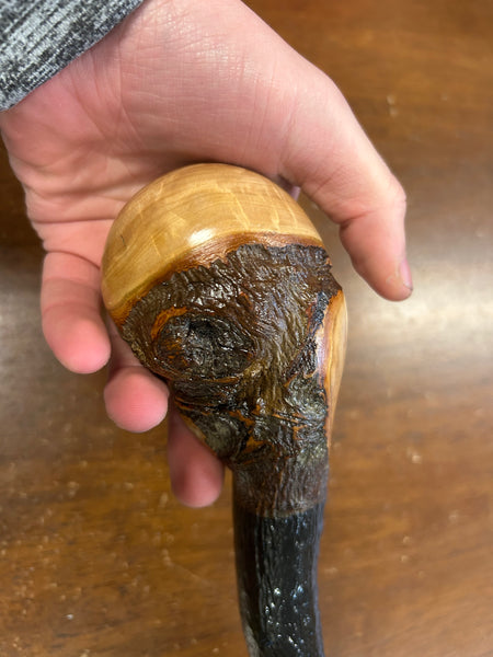 Blackthorn wood has to be seasoned for 2/3 years before it can be hand carved into a walking cane.