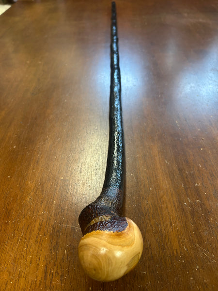 Blackthorn wood has to be seasoned for 2/3 years before it can be hand carved into a walking cane.
