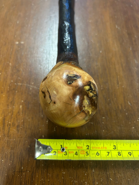 Blackthorn wood has to be seasoned for 2/3 years before it can be hand carved into a walking cane.