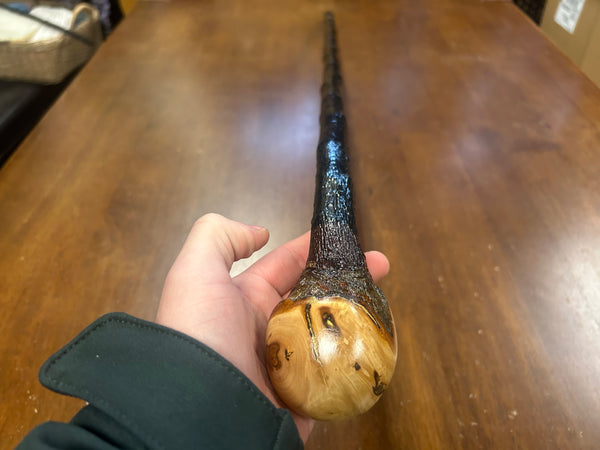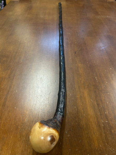 Blackthorn wood has to be seasoned for 2/3 years before it can be hand carved into a walking cane.