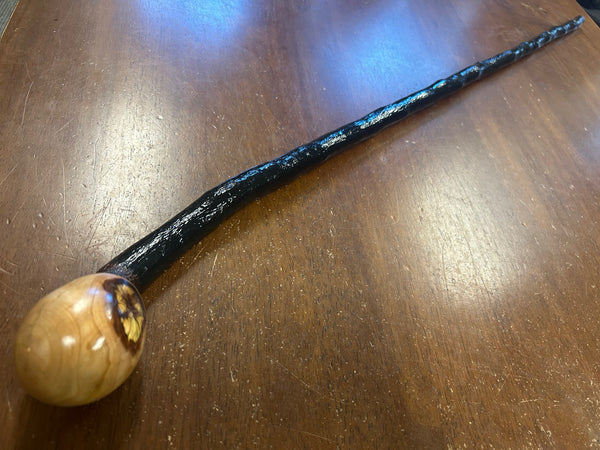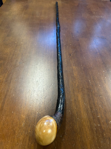 Blackthorn wood has to be seasoned for 2/3 years before it can be hand carved into a walking cane.