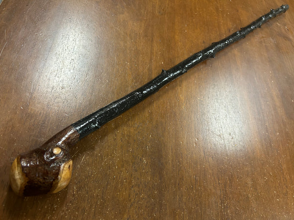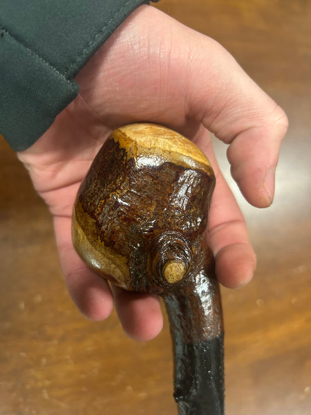 Blackthorn wood has to be seasoned for 2/3 years before it can be hand carved into a walking cane.
