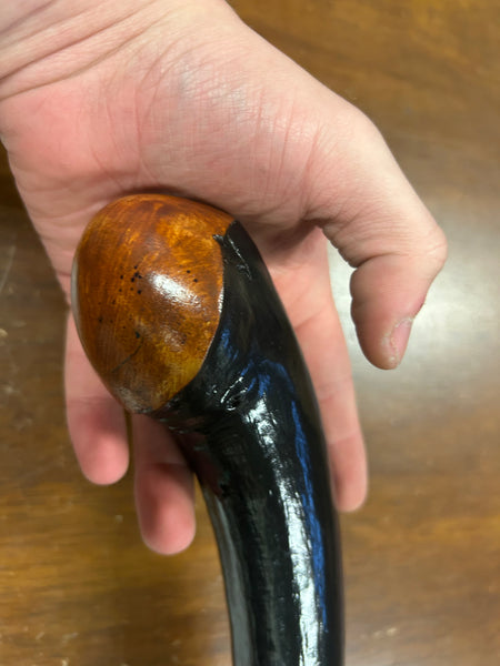 Blackthorn wood has to be seasoned for 2/3 years before it can be hand carved into a walking cane.