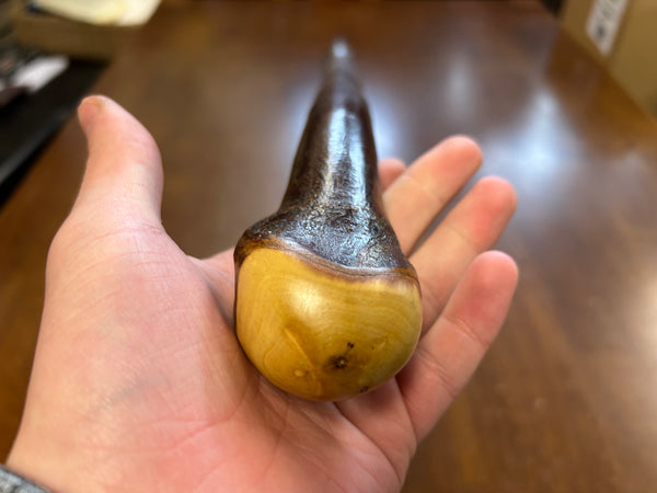 This is a one piece stick meaning unlike other stick makers who attach a handle we just use one piece of wood so the handle is naturally occurring in nature ensuring a one of a kind unique rustic walking stick.