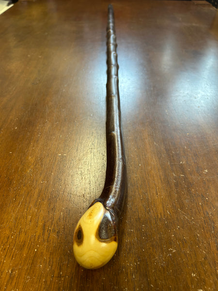 Blackthorn wood has to be seasoned for 2/3 years before it can be hand carved into a walking cane.